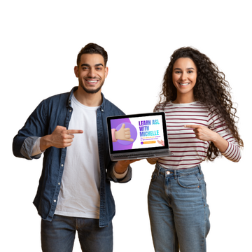 Michelle's own journey as a second-language ASL learner gives her a first-hand understanding of your needs as a hearing student.You'll benefit from her experience as a certified teacher working in Deaf schools, and her specialized training in ASL/English Bilingual-Bicultural Education. Imagine finally learning ASL easily and quickly with a course that is the perfect fit for your multi-sensory needs!And you won't have to do it alone or suffer through needless mistakes and frustration! Michelle and her team will be there to answer questions, provide tech support, host Office hours, and keep you accountable so you can make more progress than you ever thought possible.