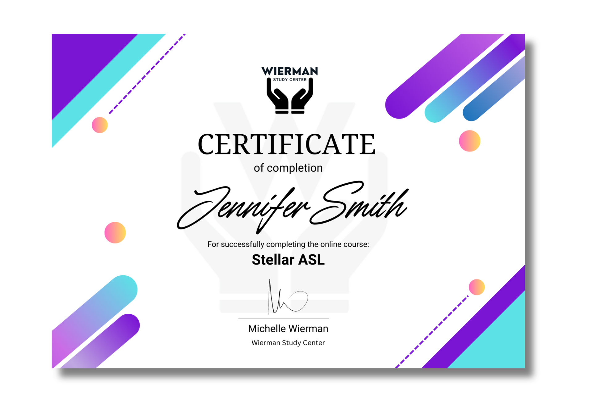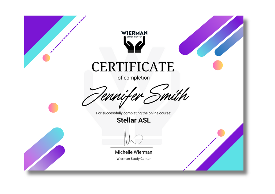Whatever your reason for learning ASL, Stellar ASL Online will help you make your dreams a reality. No more hoping, wishing, and wasting time. With this course your learning plan is ready for you, and your goals are within your reach!This course isn’t just a compilation of vocabulary for you to memorize. Each lesson includes practice with making sentences, so that you can immediately apply the signs you learn to actual conversations. You will master basic sentence types and feel confident in both your expressive and receptive signing skills.We've done all the work to create a course that gives you everything you need to succeed, so you don't have to waste any more time and can get straight to making real progress towards your language goals.